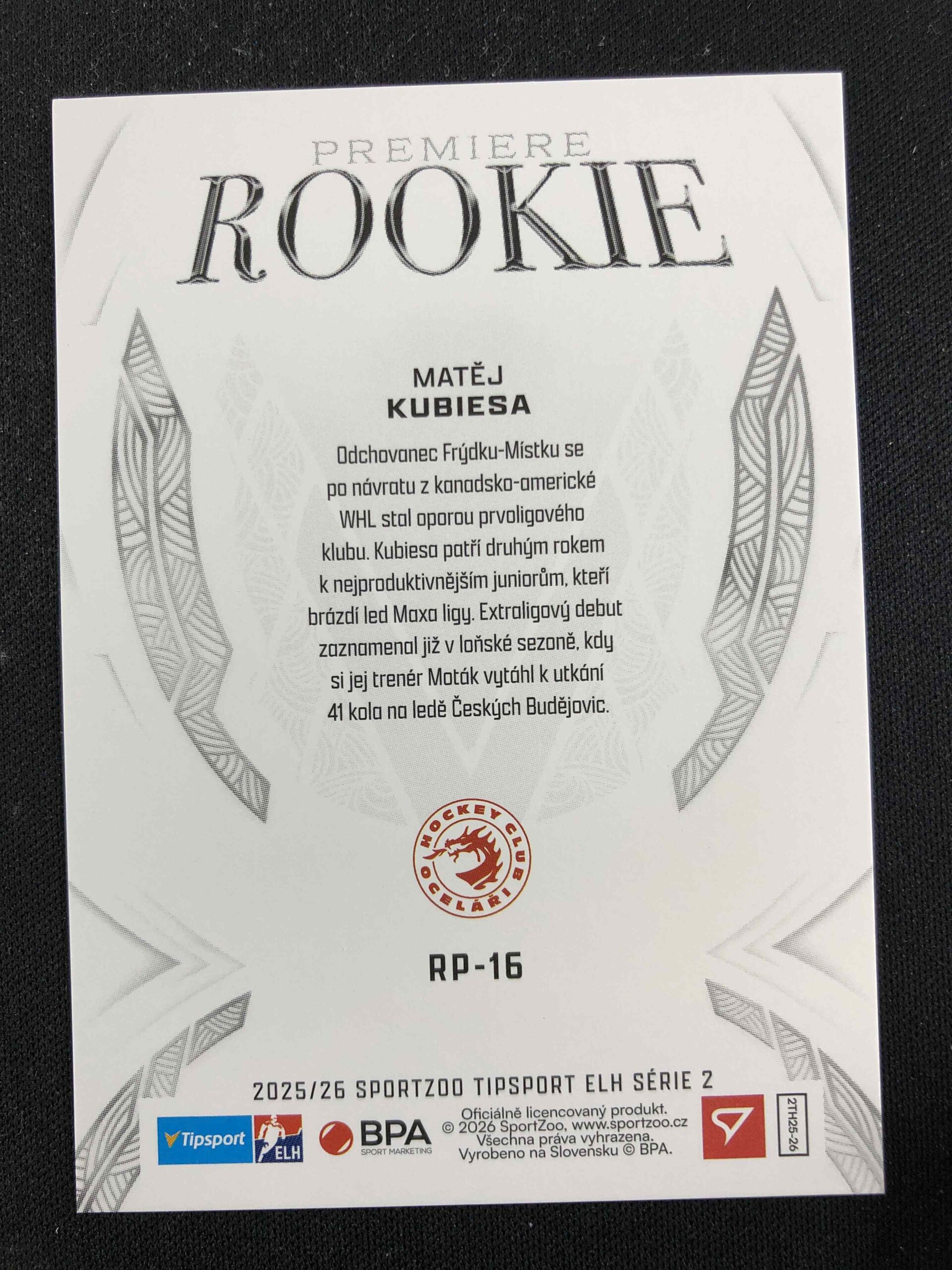 Sběratelská karta 2025/2026 Sportzoo Serie 2 Rookie Premiere RP-16 Matěj Kubiesa Inzert