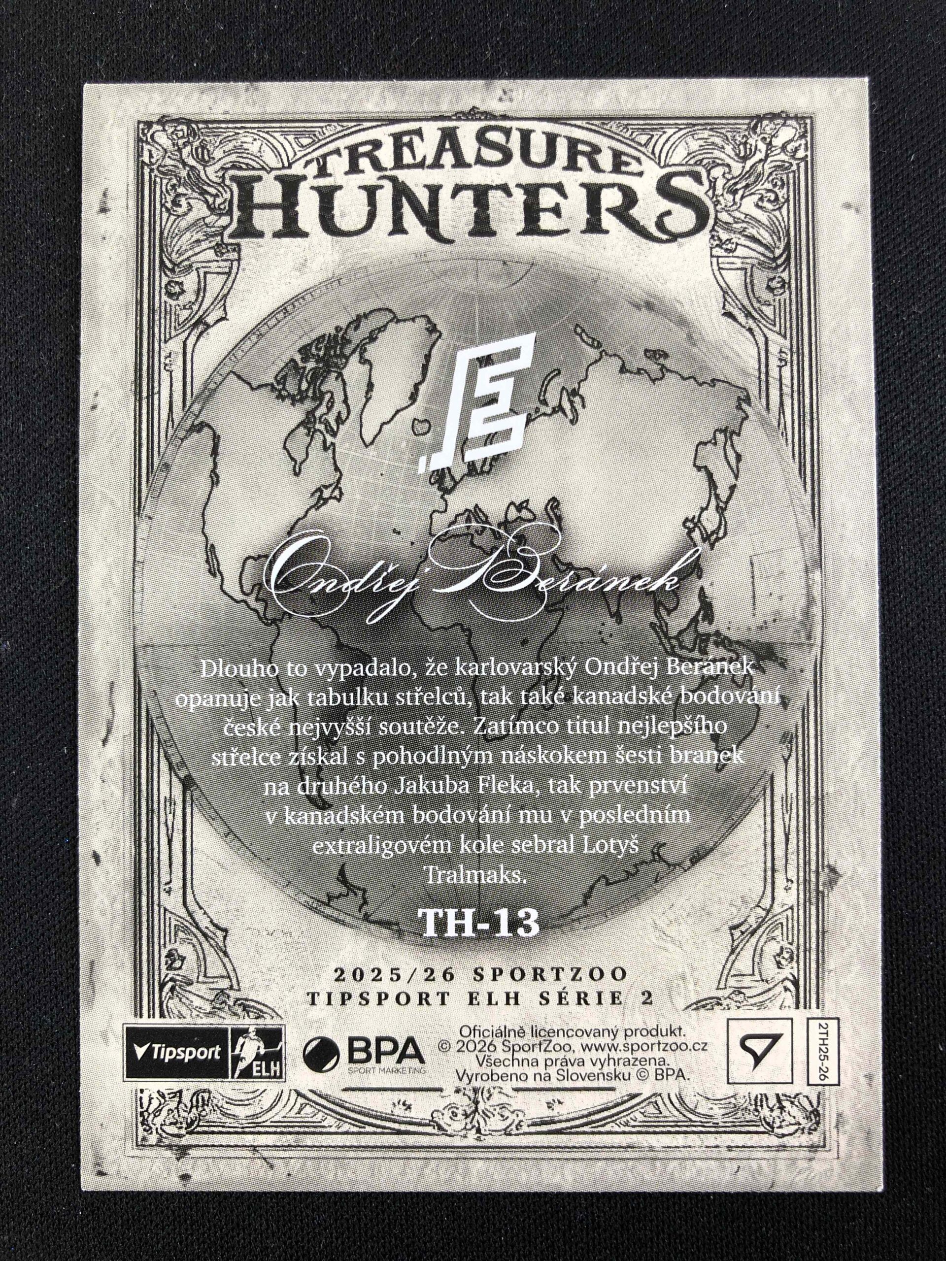 Sběratelská karta 2025/2026 Sportzoo Serie 2 Treasure Hunter TH-13 Ondřej Beránek Inzert