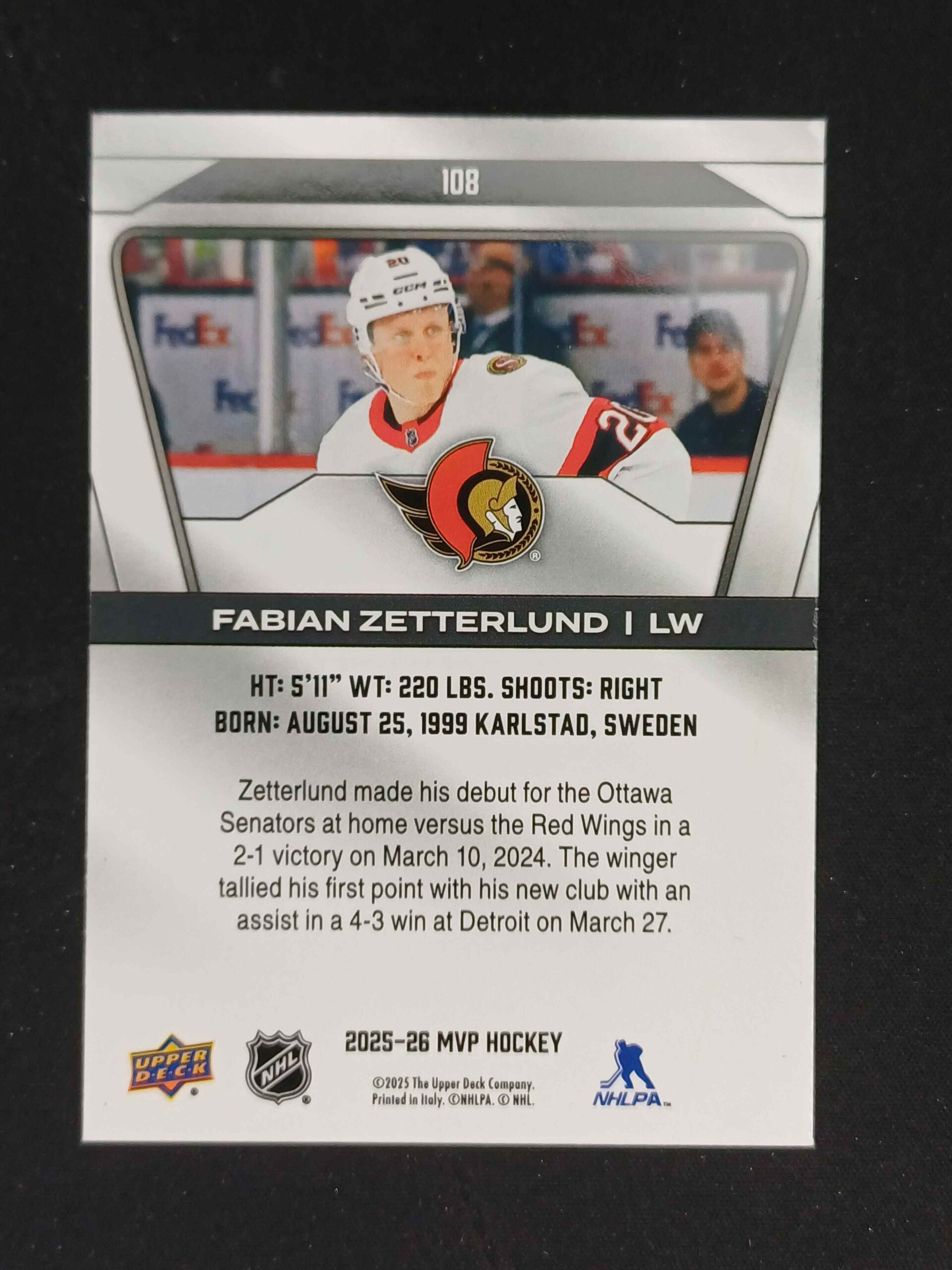 2025/2026 Upper Deck MVP Base 108 Fabian Zetterlund