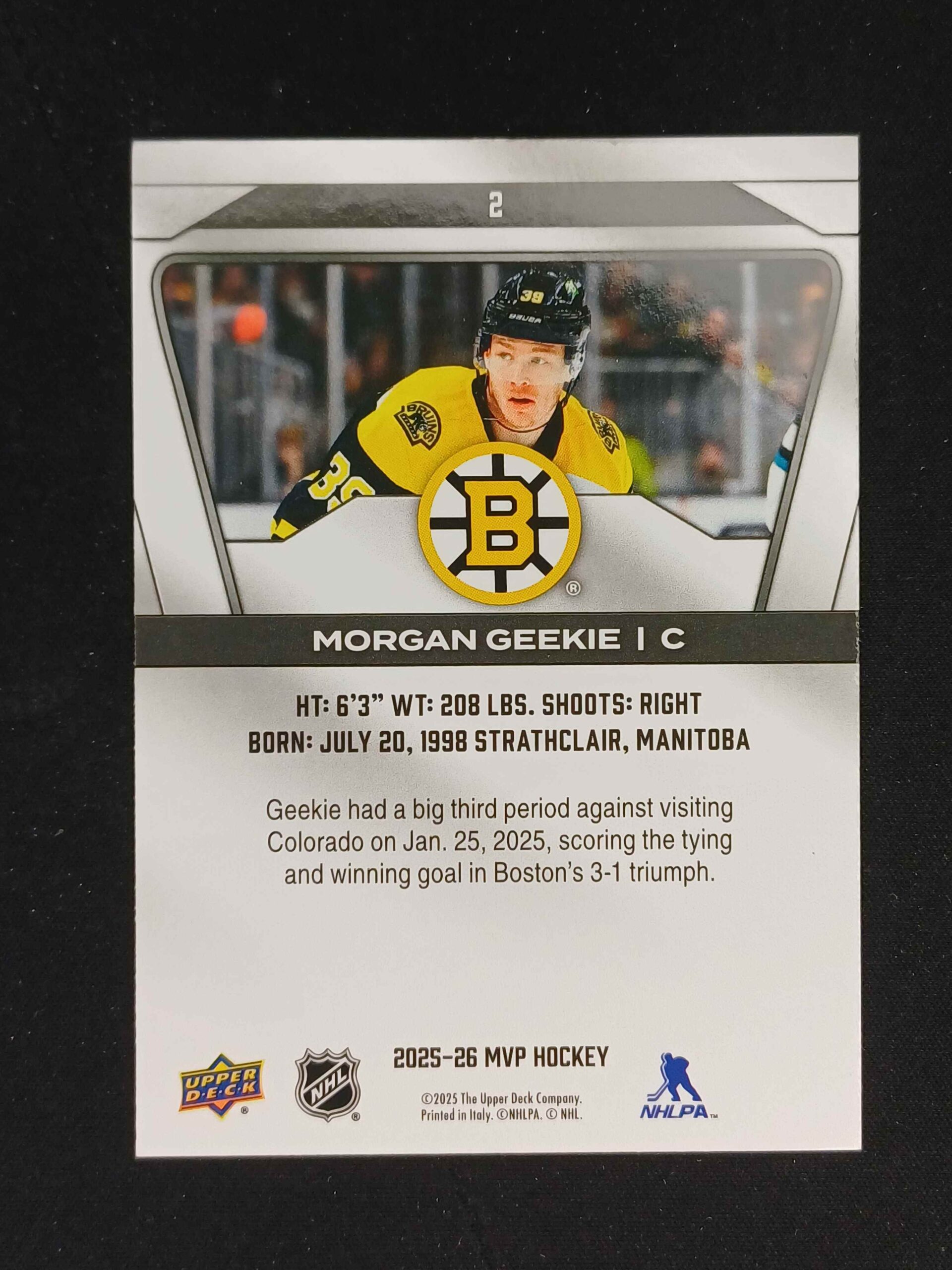 Sběratelská karta 2025/2026 Upper Deck MVP Base 2 Morgan Geekie