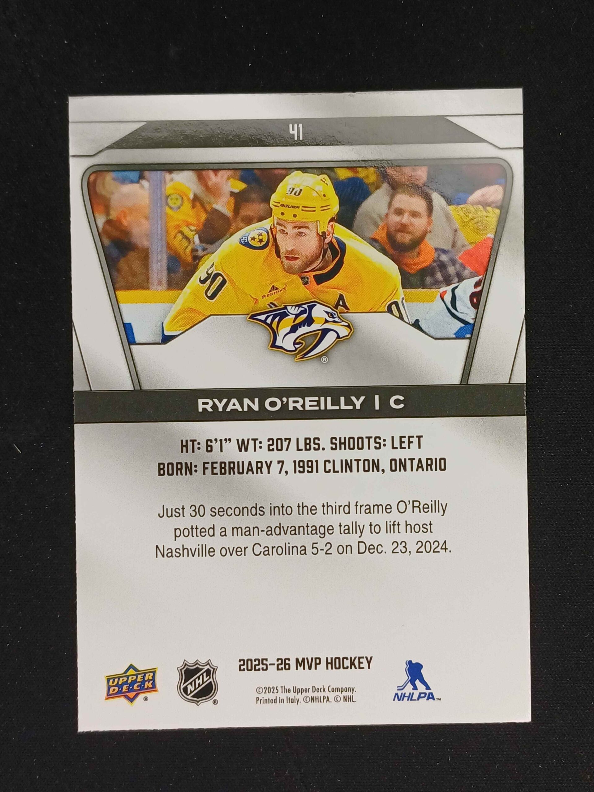 Sběratelská karta 2025/2026 Upper Deck MVP Base 41 Ryan O’Reilly