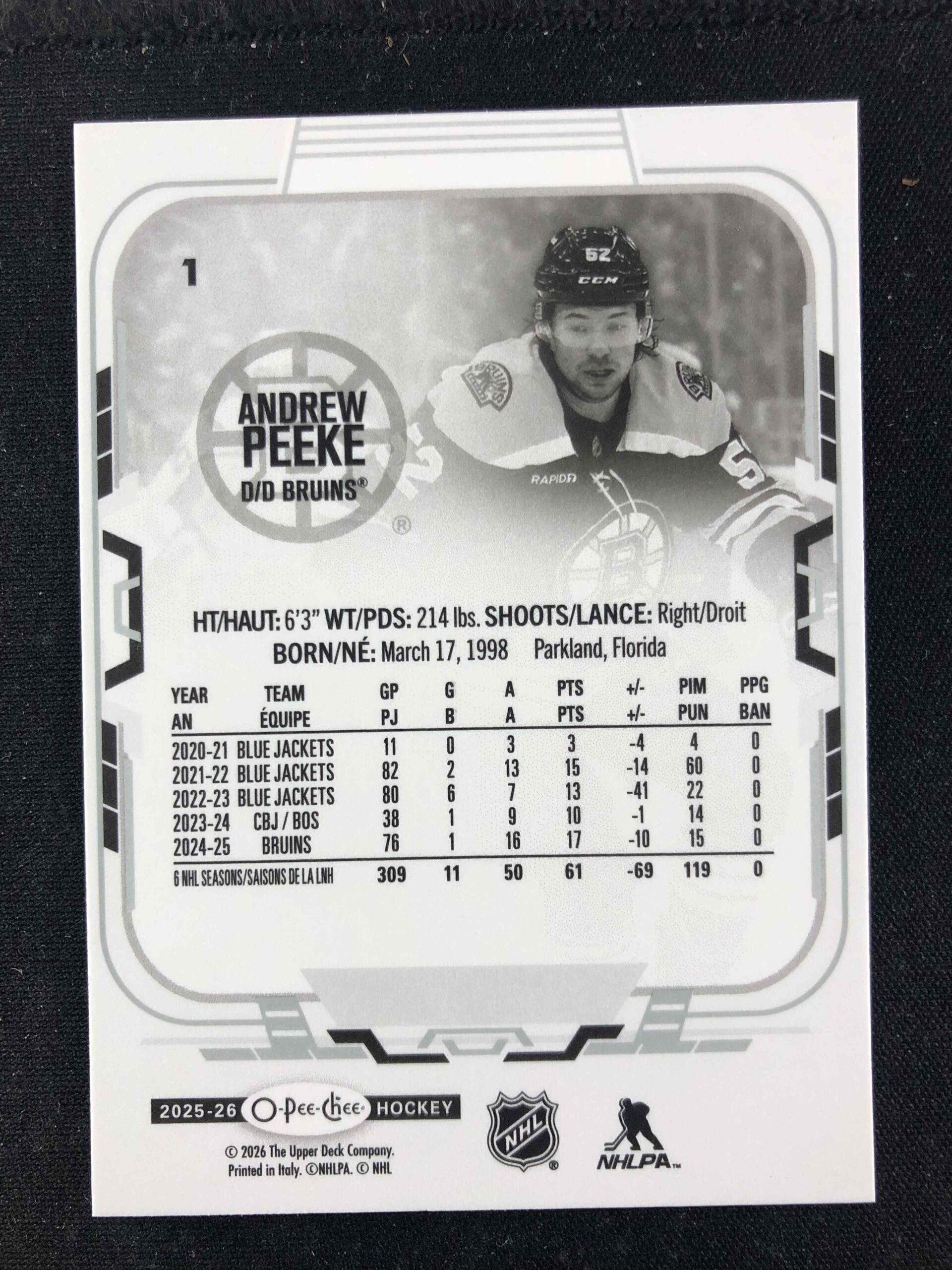 Sběratelská karta 2025/2026 Upper Deck O-Pee-Chee Base 1 Andrew Peeke
