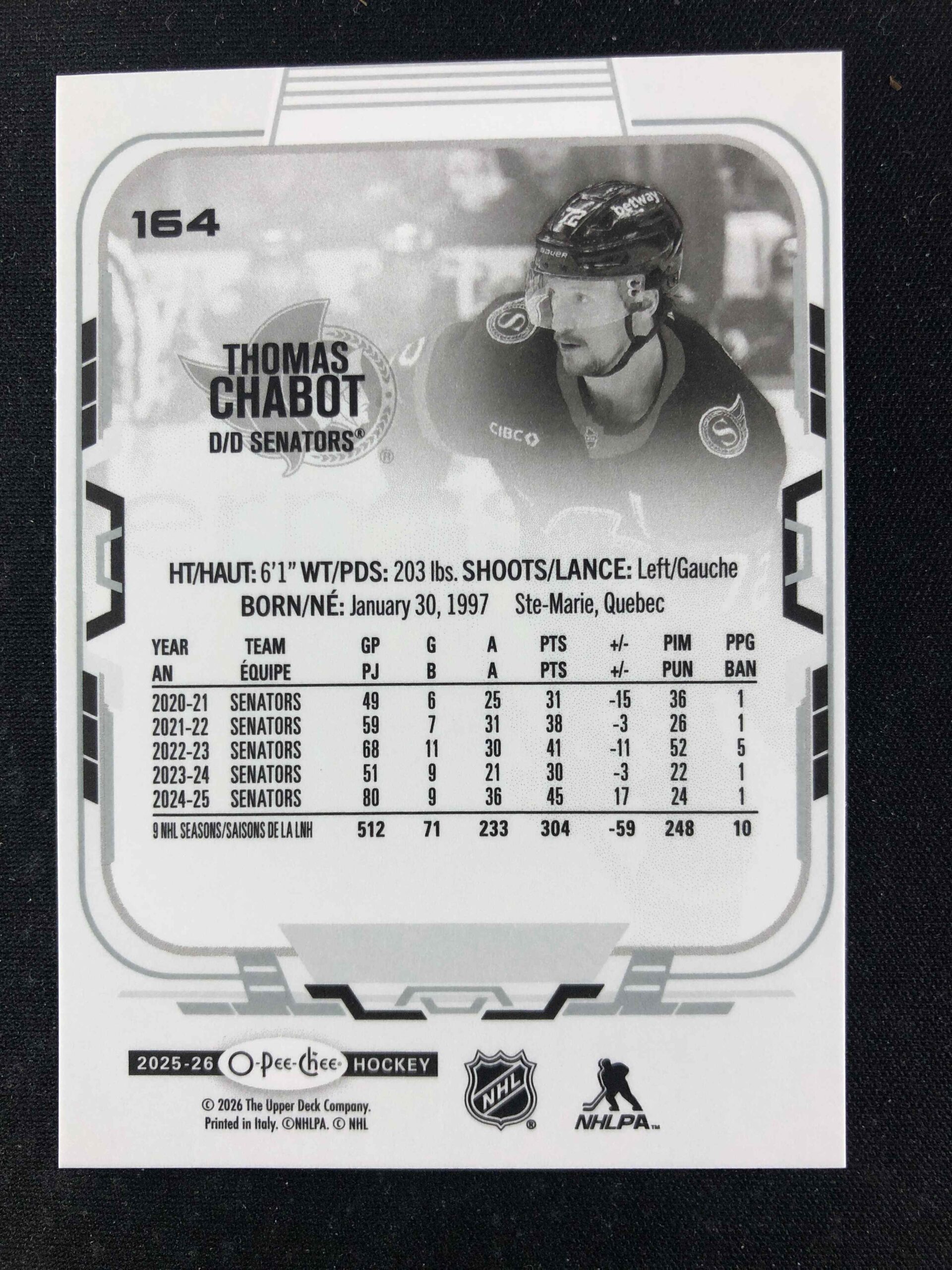 2025/2026 Upper Deck O-Pee-Chee Base 164 Thomas Chabot