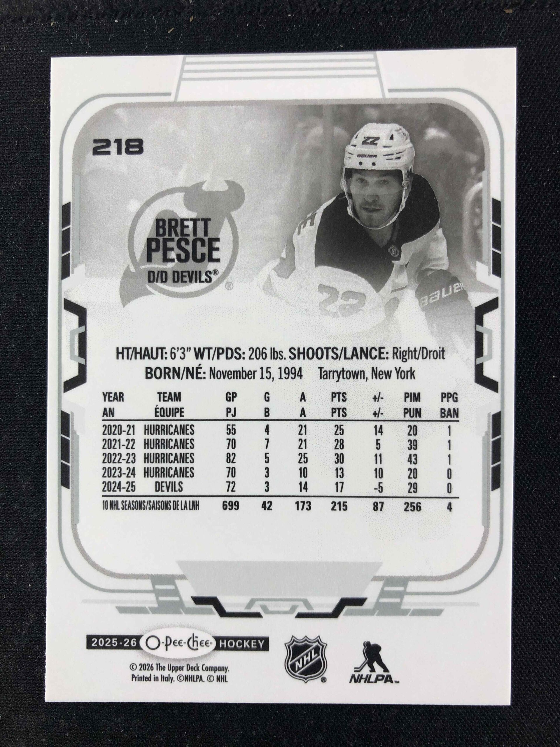 Sběratelská karta 2025/2026 Upper Deck O-Pee-Chee Base 218 Brett Pesce