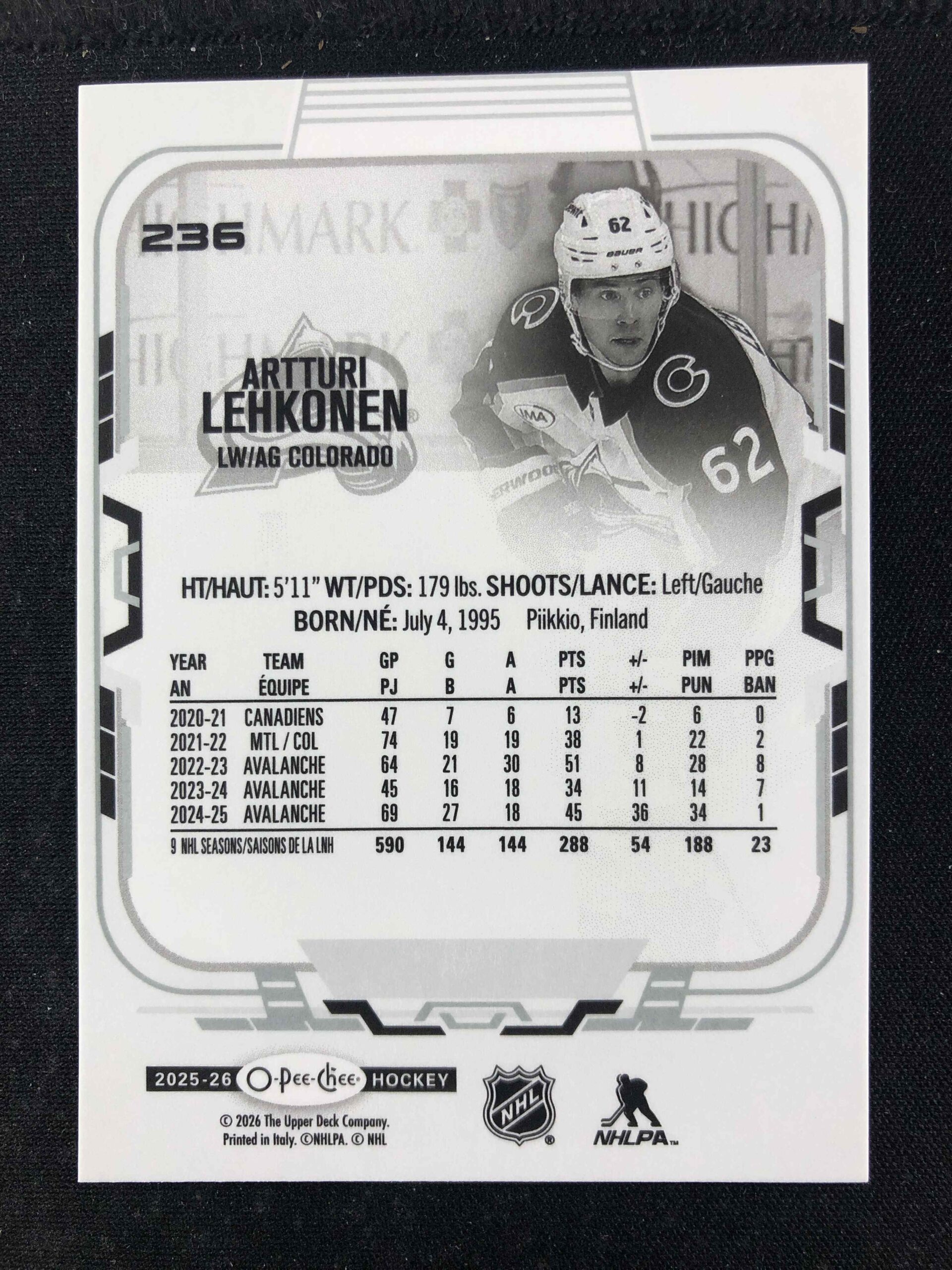 2025/2026 Upper Deck O-Pee-Chee Base 236 Artturi Lehkonen