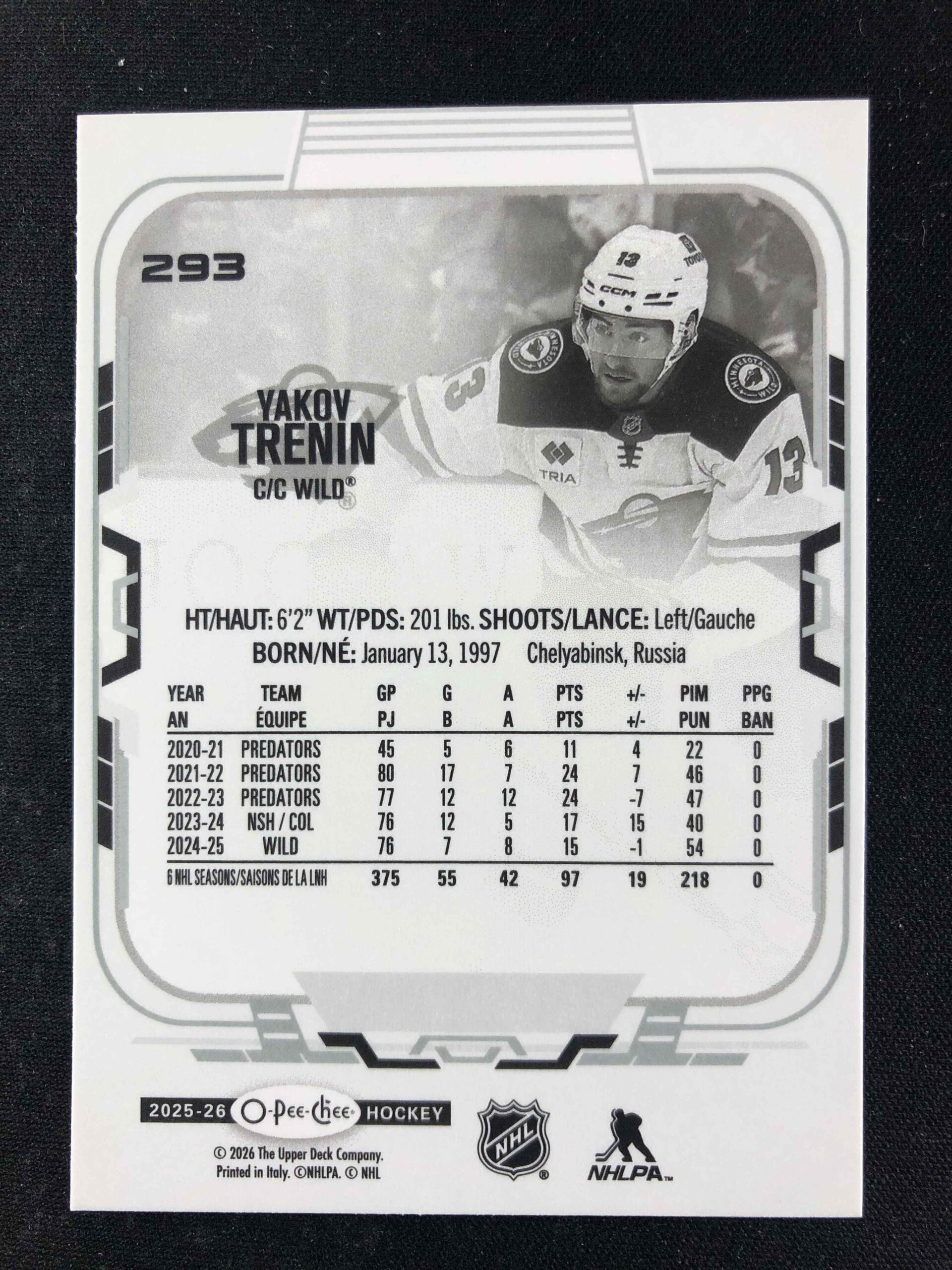 Sběratelská karta 2025/2026 Upper Deck O-Pee-Chee Base 293 Yakov Trenin