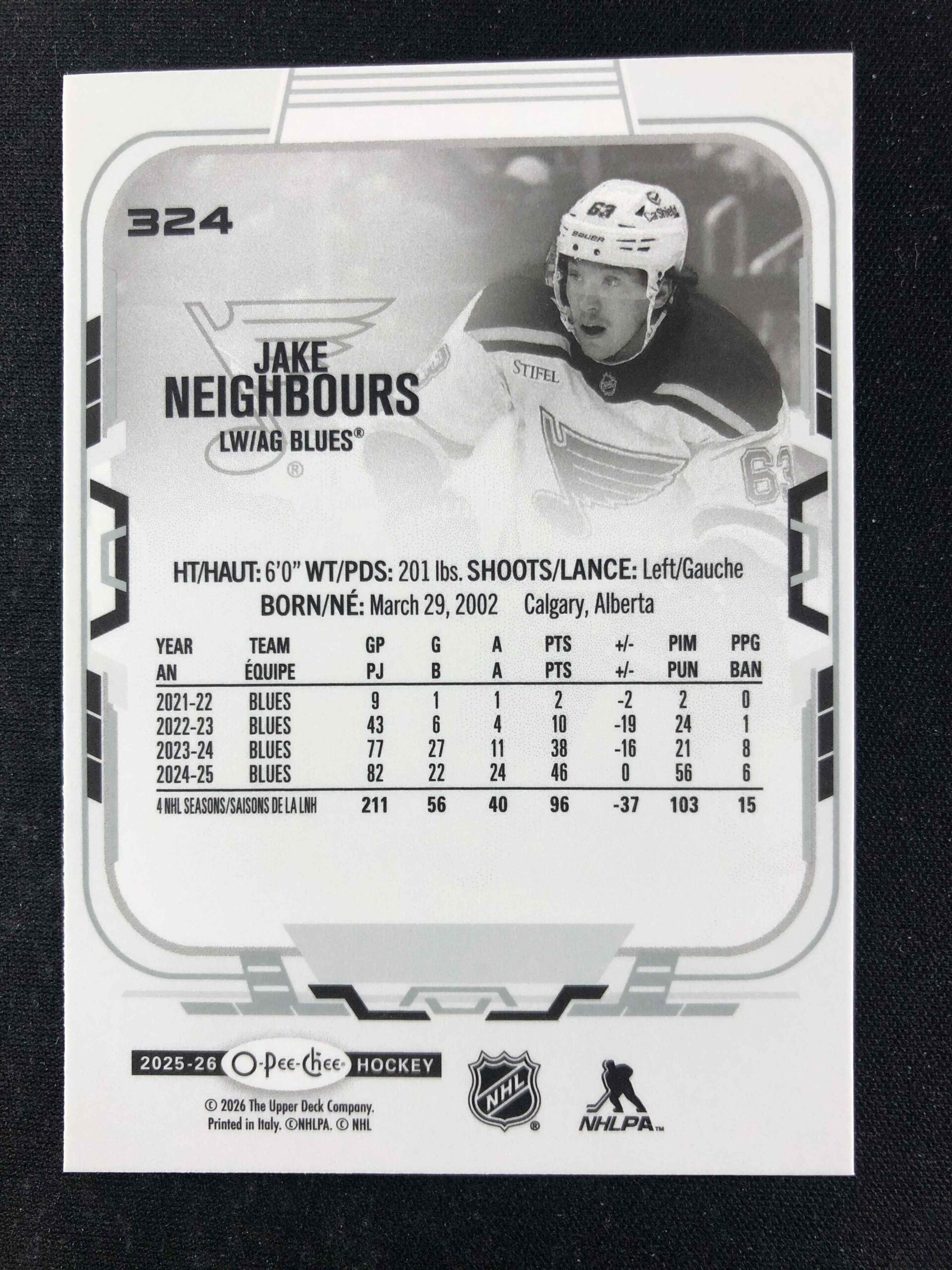 Sběratelská karta 2025/2026 Upper Deck O-Pee-Chee Base 324 Jake Neighbours