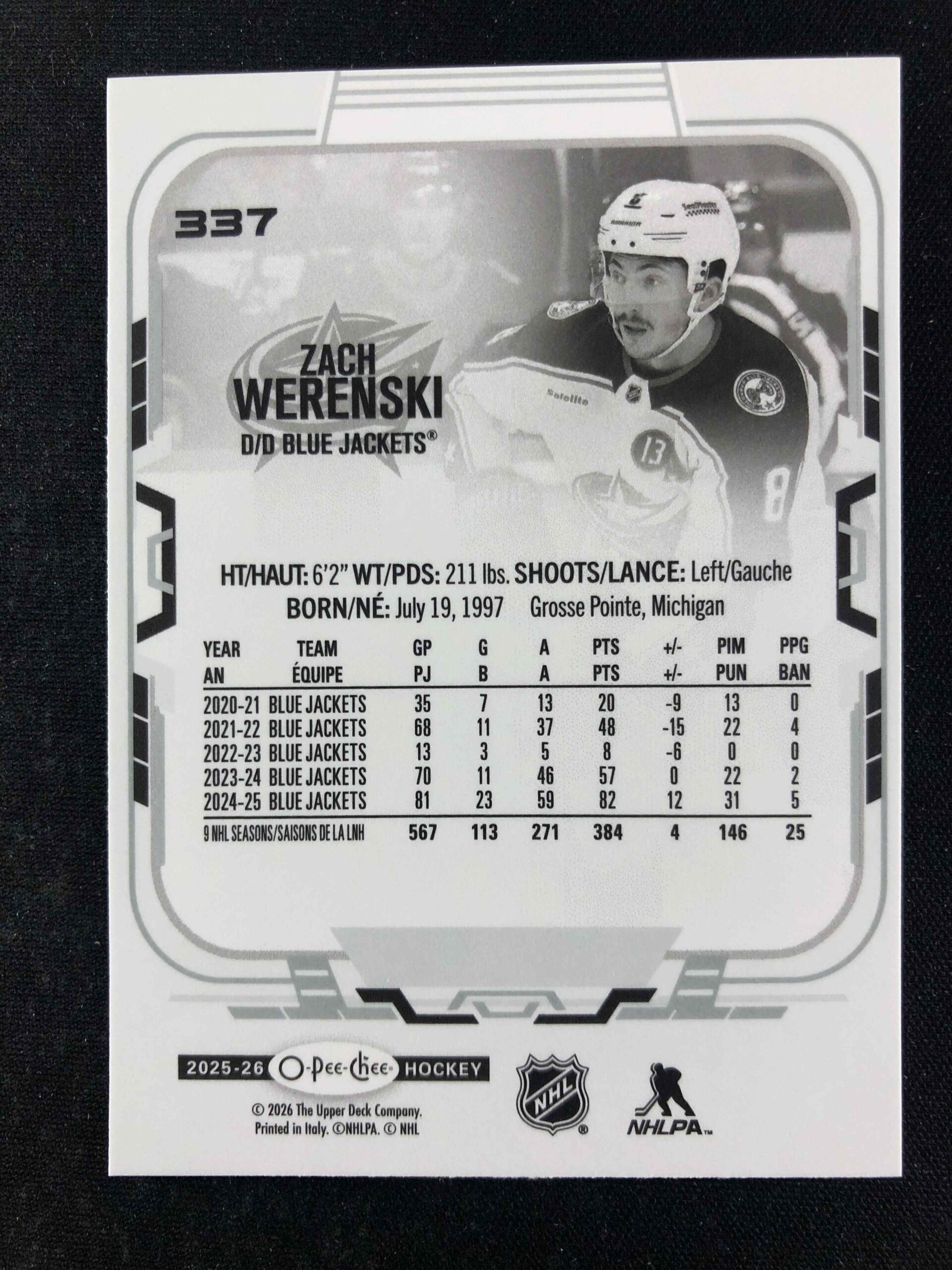 Sběratelská karta 2025/2026 Upper Deck O-Pee-Chee Base 337 Zach Werenski