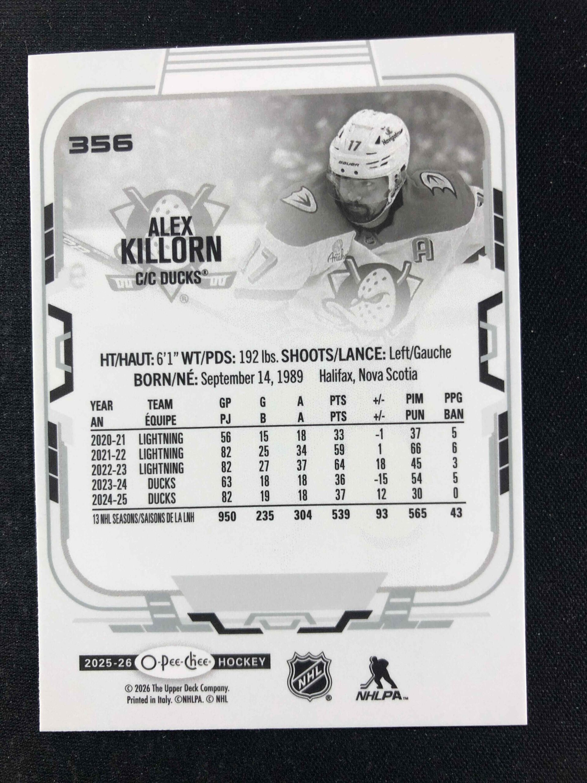 Sběratelská karta 2025/2026 Upper Deck O-Pee-Chee Base 356 Alex Killorn