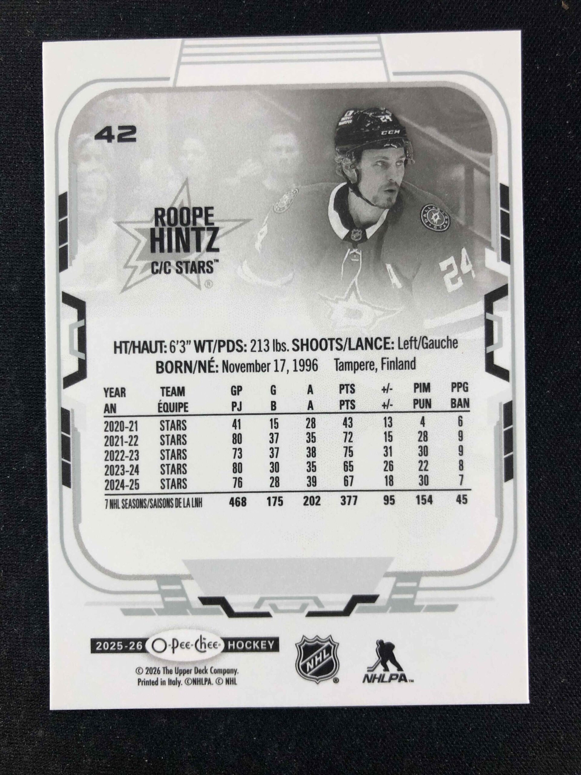 Sběratelská karta 2025/2026 Upper Deck O-Pee-Chee Base 42 Roope Hintz