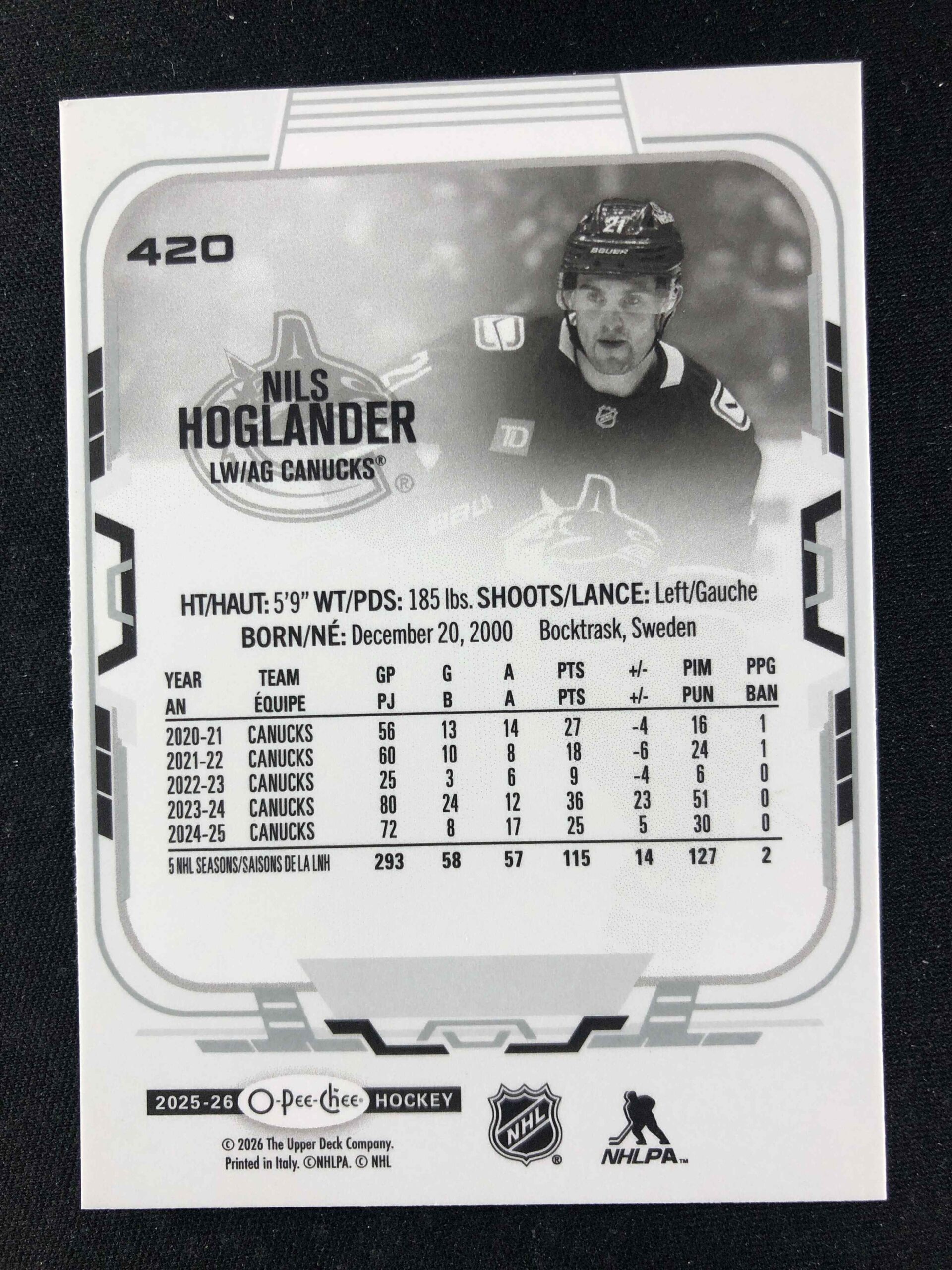 2025/2026 Upper Deck O-Pee-Chee Base 420 Nils Hoglander