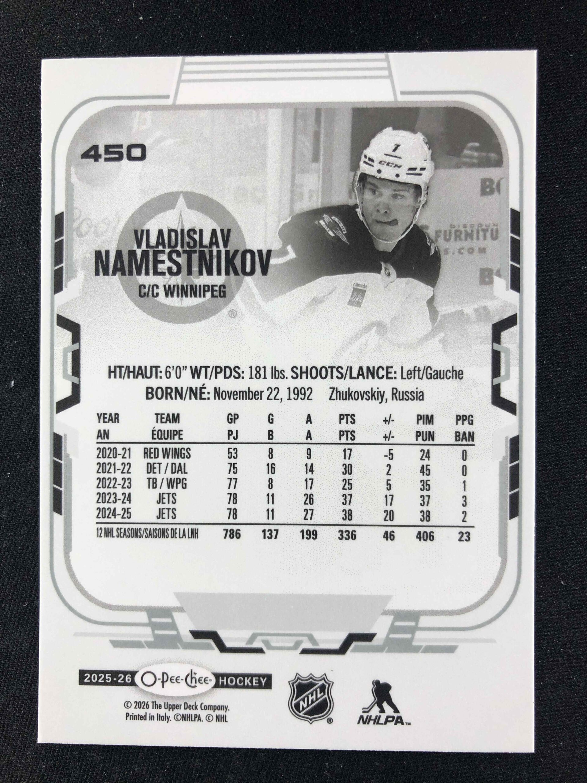 Sběratelská karta 2025/2026 Upper Deck O-Pee-Chee Base 450 Vladislav Namestnikov