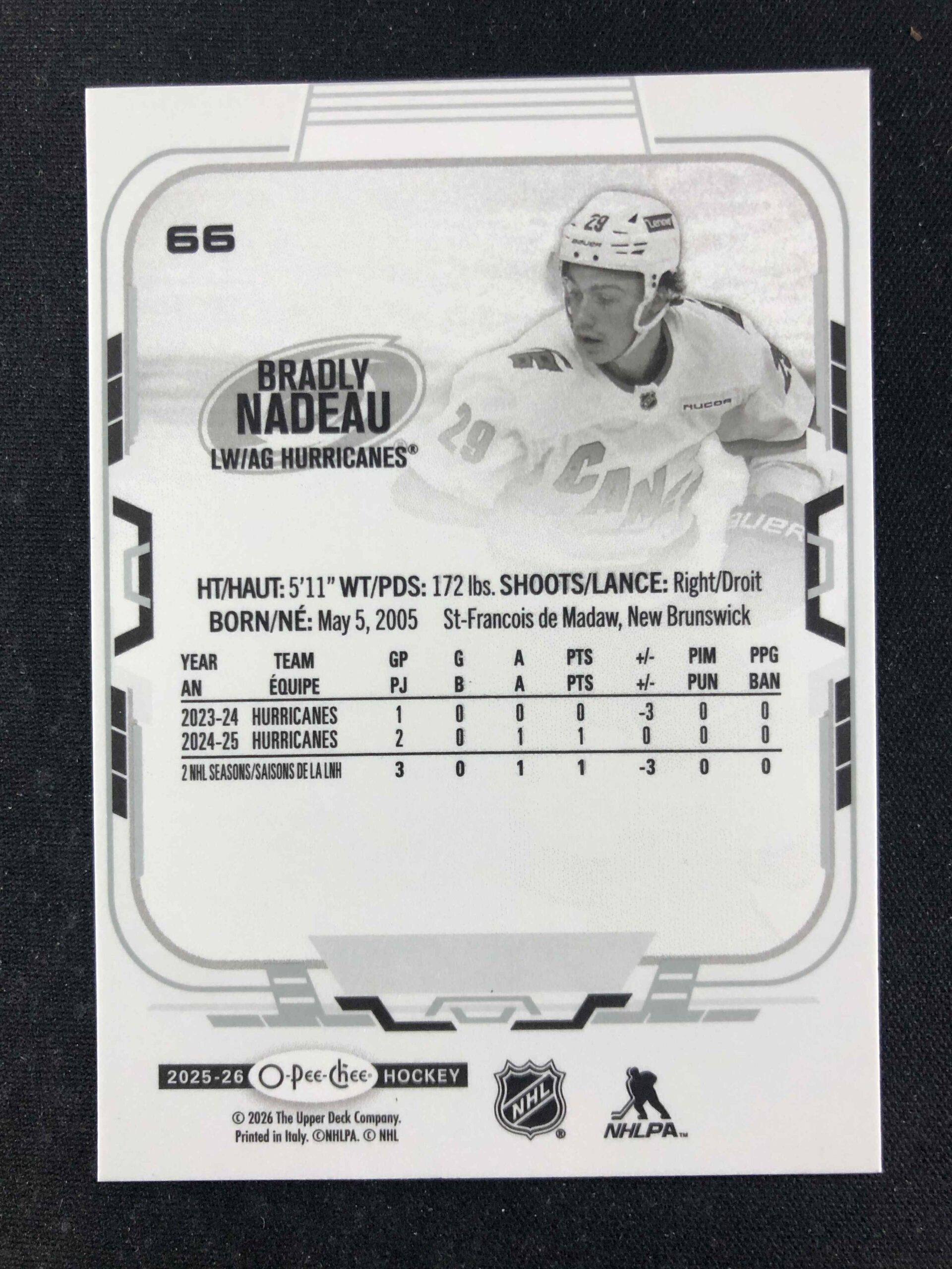 Sběratelská karta 2025/2026 Upper Deck O-Pee-Chee Base 66 Bradly Nadeau