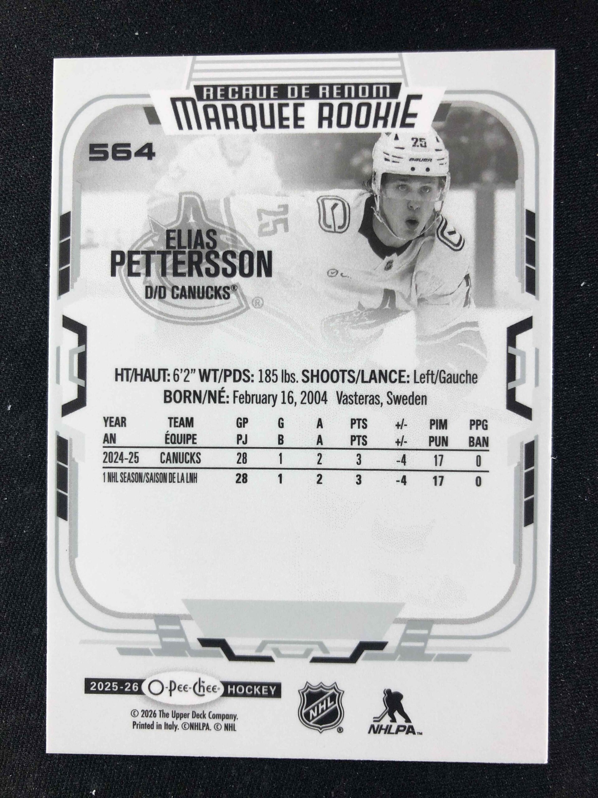 Sběratelská karta 2025/2026 Upper Deck O-Pee-Chee Marquee Rookie 564 Elias Pettersson (D)