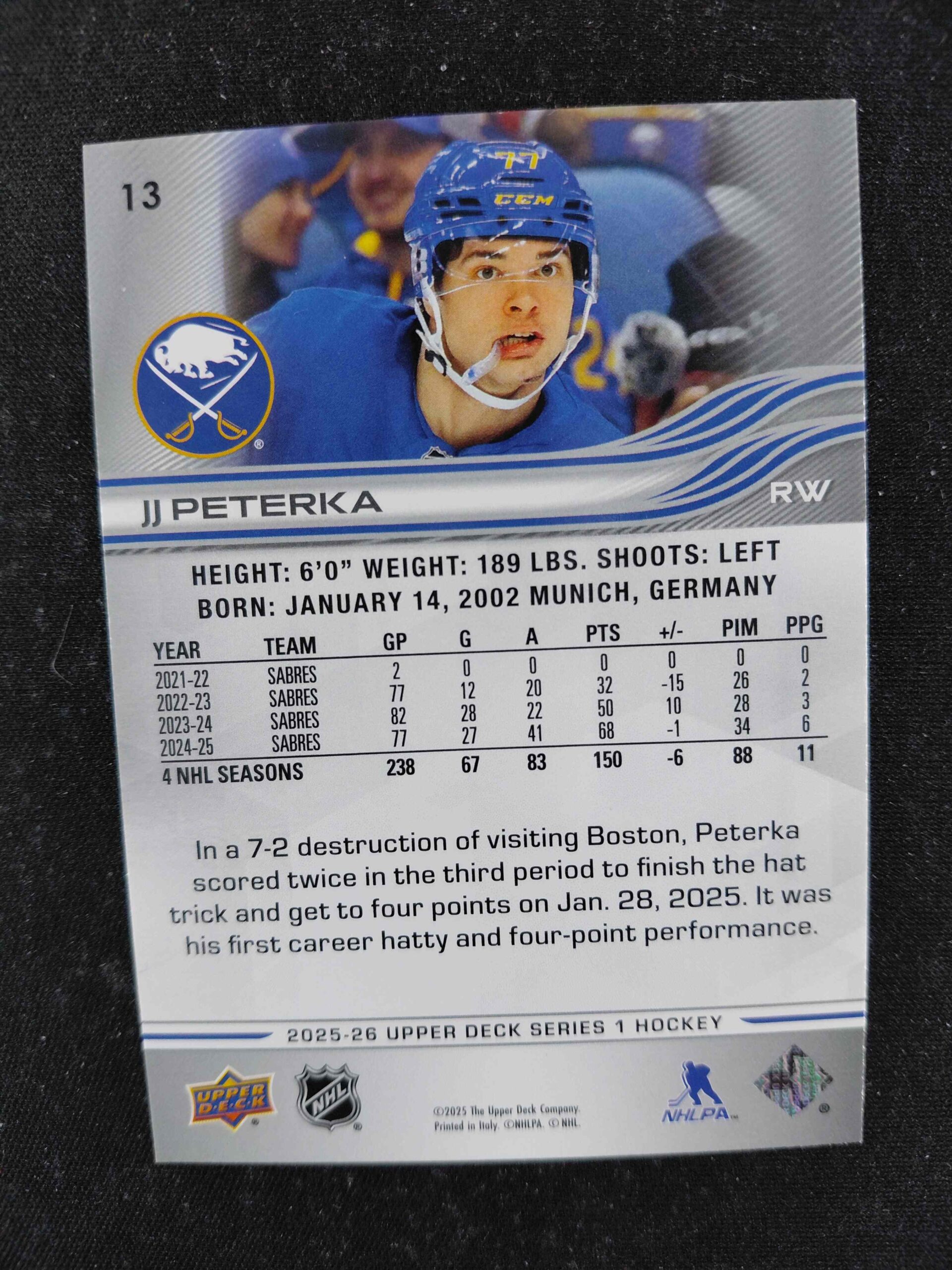 Sběratelská karta 2025/2026 Upper Deck Series 1 Base 13 John-Jason Peterka