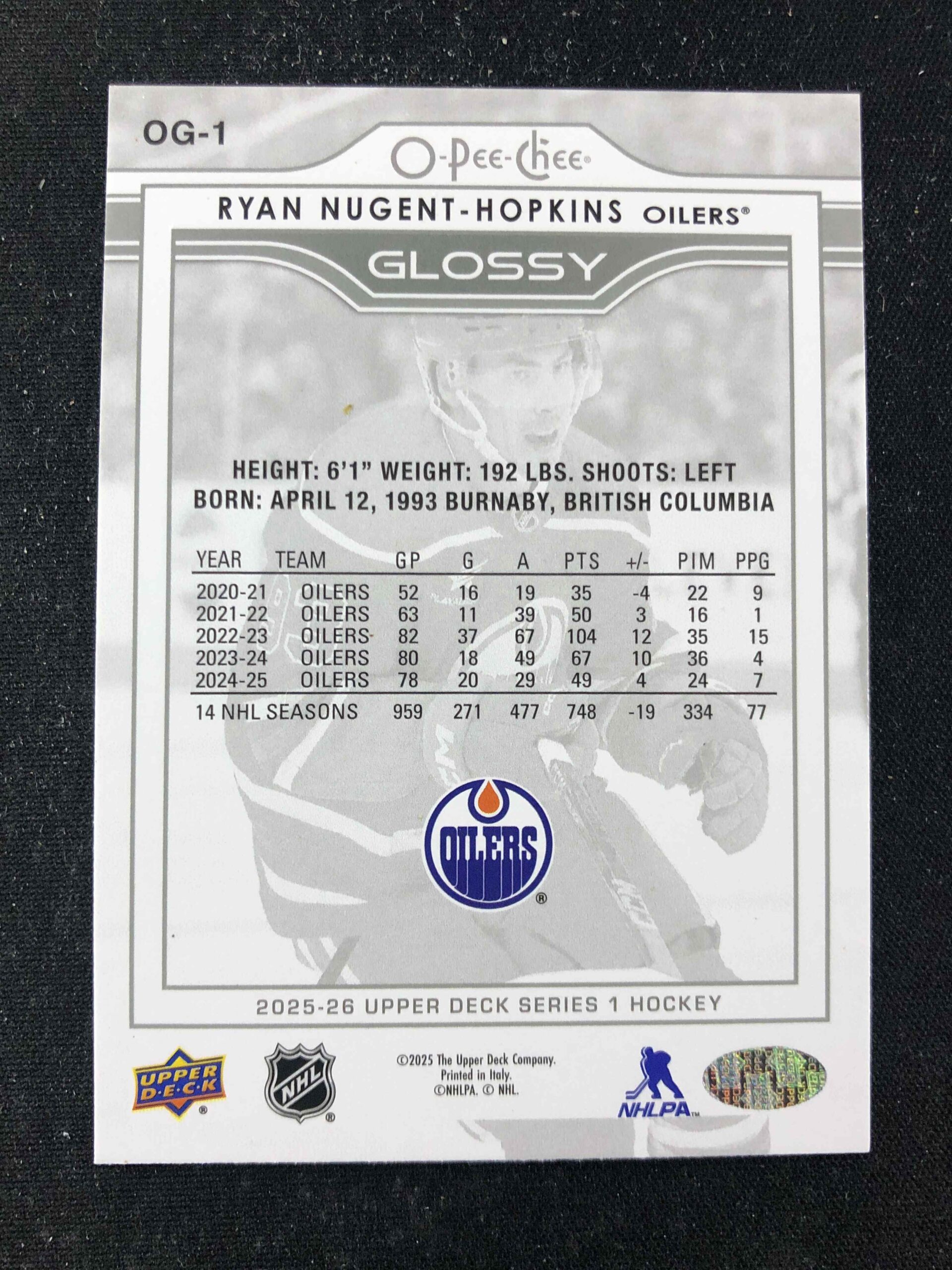Sběratelská karta 2025/2026 Upper Deck Series 1 Glossy OG.1 Ryan Nugent-Hopkins Inzert