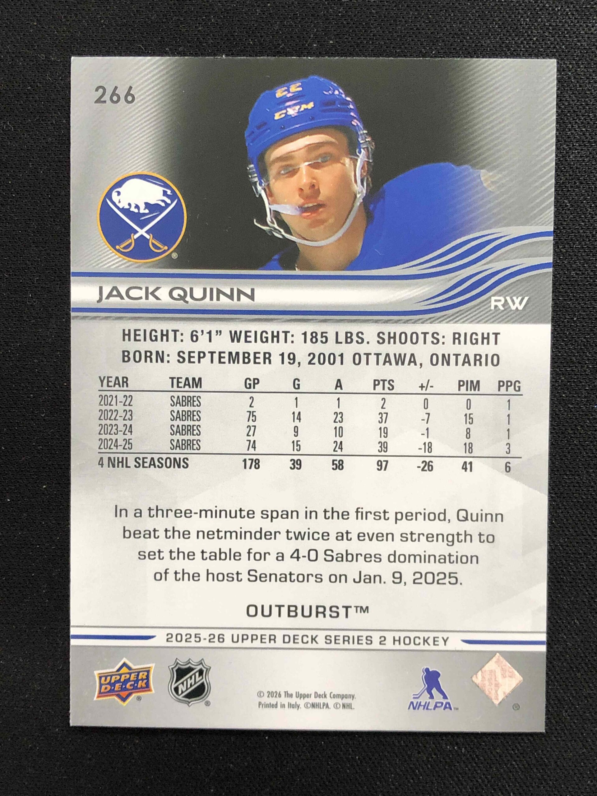 Sběratelská karta 2025/2026 Upper Deck Series 2 Outburst 266 Jack Quinn Paralel