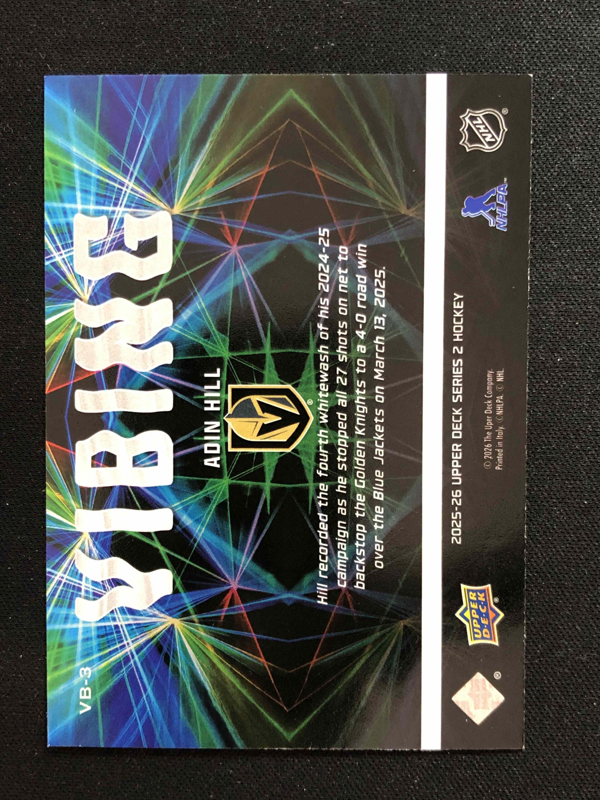 Sběratelská karta 2025/2026 Upper Deck Series 2 Vibing VB-3 Adin Hill Inzert