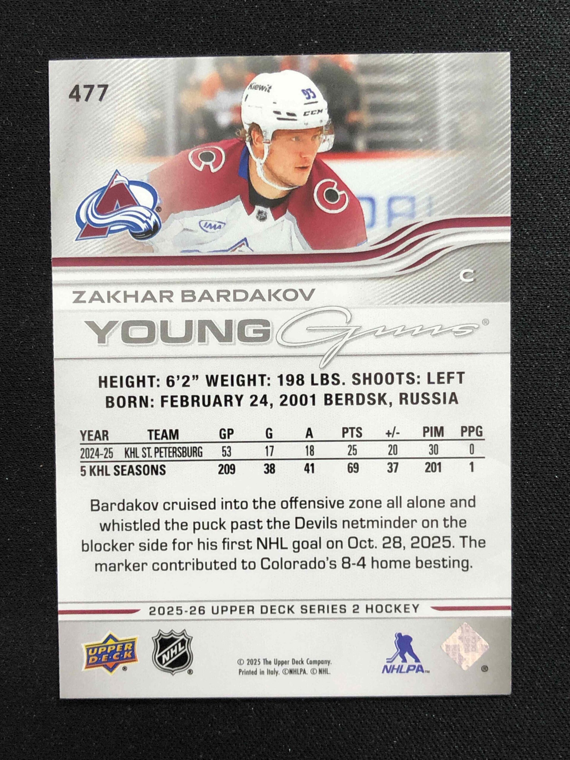 Sběratelská karta 2025/2026 Upper Deck Series 2 Young Guns 477 Zakhar Bardakov Inzert