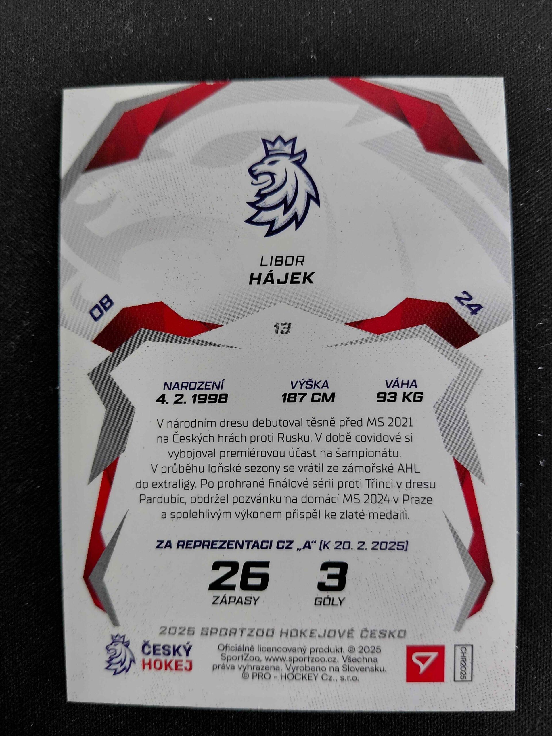 2025 Sportzoo Hokejové Česko Base 13 Libor Hájek