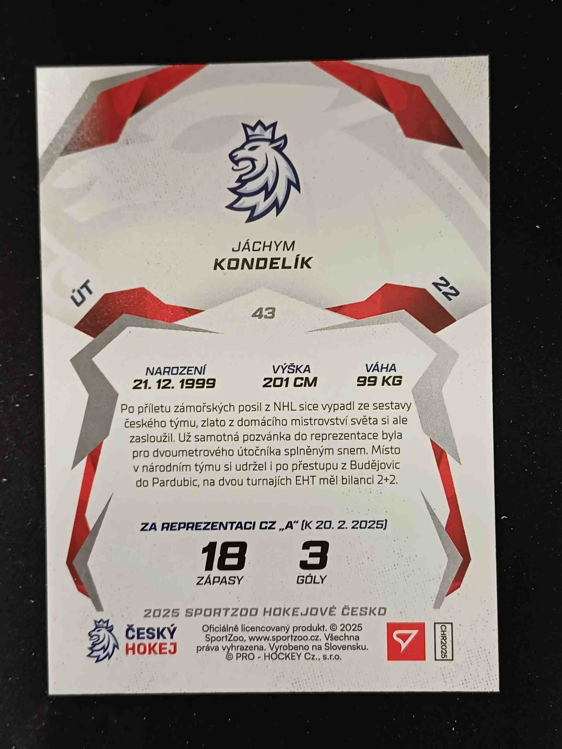 2025 Sportzoo Hokejové Česko Base 43 Jáchym Kondelík