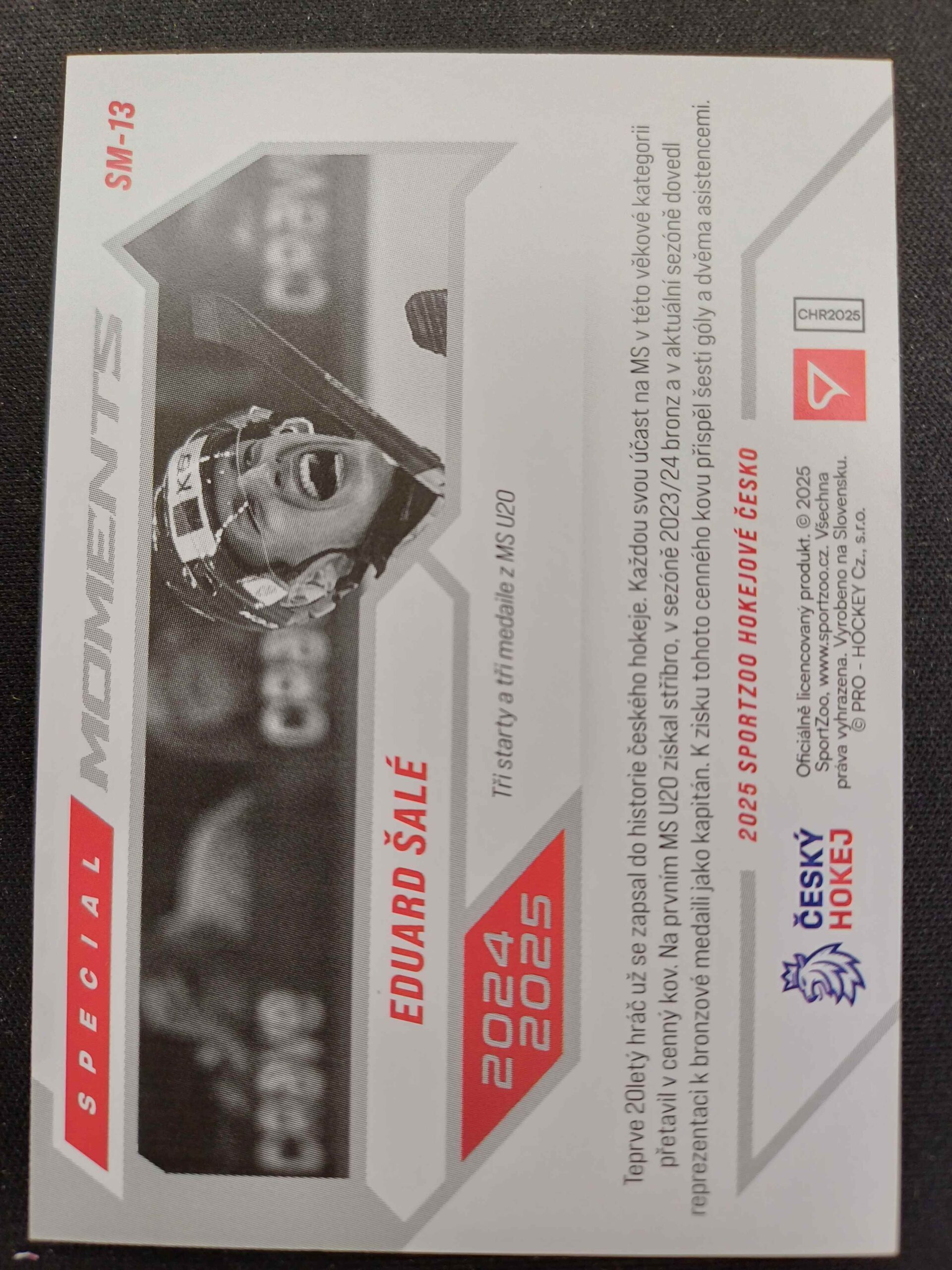 Sběratelská karta 2025 Sportzoo Hokejové Česko Special Moments SM-13 Eduard Šalé Inzert
