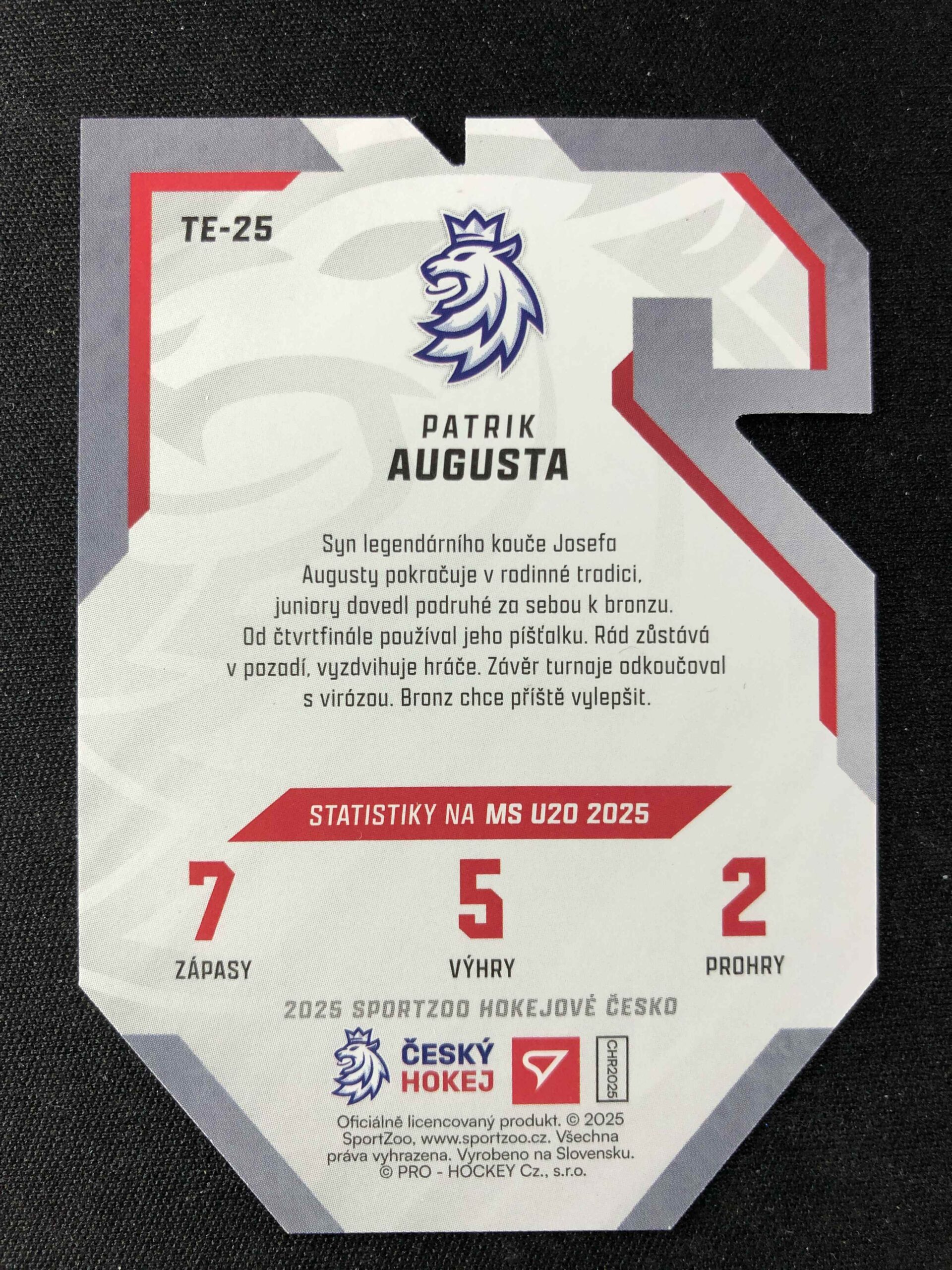 2025 Sportzoo Hokejové Česko Team 20 Blue TE-25 Patrik Augusta Inzert 08/65