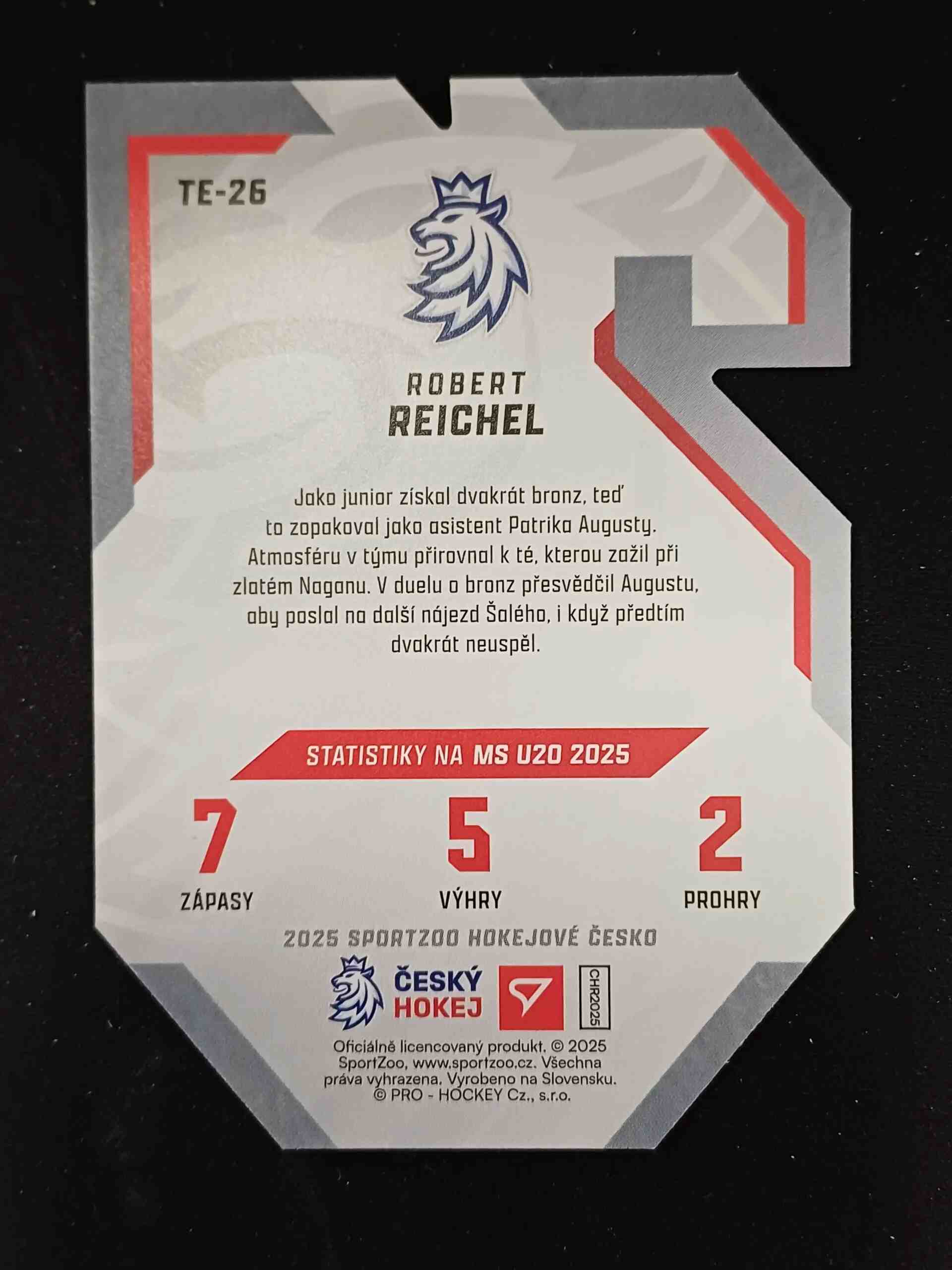 2025 Sportzoo Hokejové Česko Team 20 TE-26 Robert Reichel Inzert