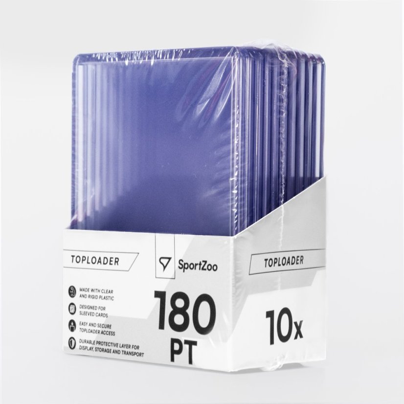 Balení 10 kusů pevných plastových obalů o tloušťce 180PT. Toploadery jsou určeny k ochraně sběratelských kartiček o tloušťce přibližně do 5 mm.